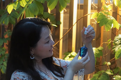 原液呈透明液態,質感仿如空氣般,輕盈零負擔,輕輕一泵便能吸出閃閃的金箔,延展性很好,易於塗抹,快速吸收,推開後水潤清爽不黏笠,還散發出淡淡香氣。