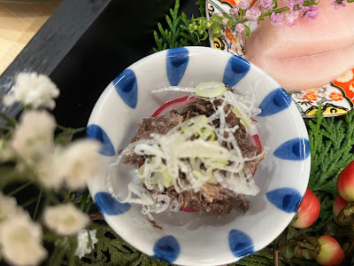 當中以這款血合最為特別。血合是位於鮪魚脊椎四周與紅肉相黏接的部位,切取十分麻煩,所以不常有機會吃得到。料理時放入傳統的滷汁中滷入味,品嘗時,肉質口感軟嫩中還帶有點點嚼勁,毫無腥味,差點以為自己吃的是滷牛肉呢!