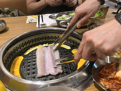 韓國人吃鰻魚去補身子,我也愛吃這裡的韓國鰻魚,大大條,只是自己總是燒不好,幸好今天有店員協助,才能把這肥美的鰻魚燒至金黃色,皮香肉嫩,魚油豐腴甘香,入口時更是啖啖肉,十分香脆喔!