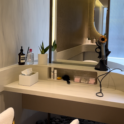 健身中心內還有設計獨特的男女淋浴更衣間、女士尊享化妝間、舒適共用休息區,而 BeautySearch 最欣賞的,是當中的女淋浴更衣間及尊享化妝間。